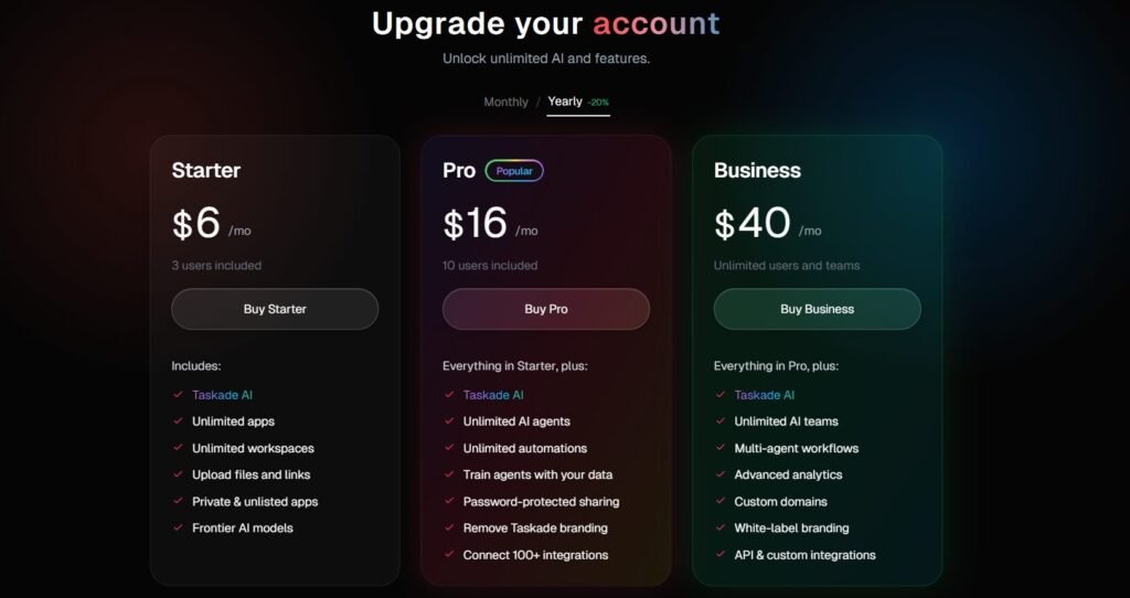 - Taskade: strongest for agents and automations inside projects, lightweight and fast.